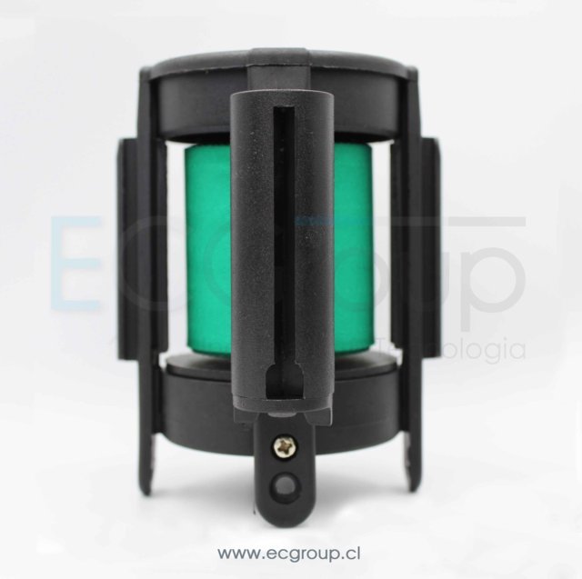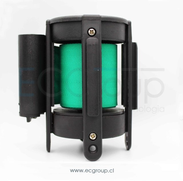 con un sistema de bloqueo en la cinta retráctil para evitar su liberación