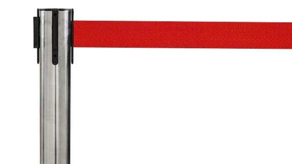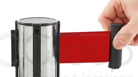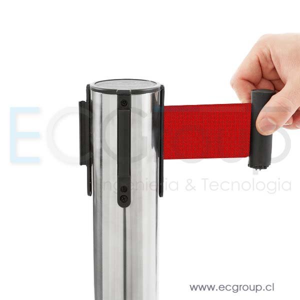 bloqueo en la cinta retráctil para evitar su liberación accidental de la base del separador de filas, siendo